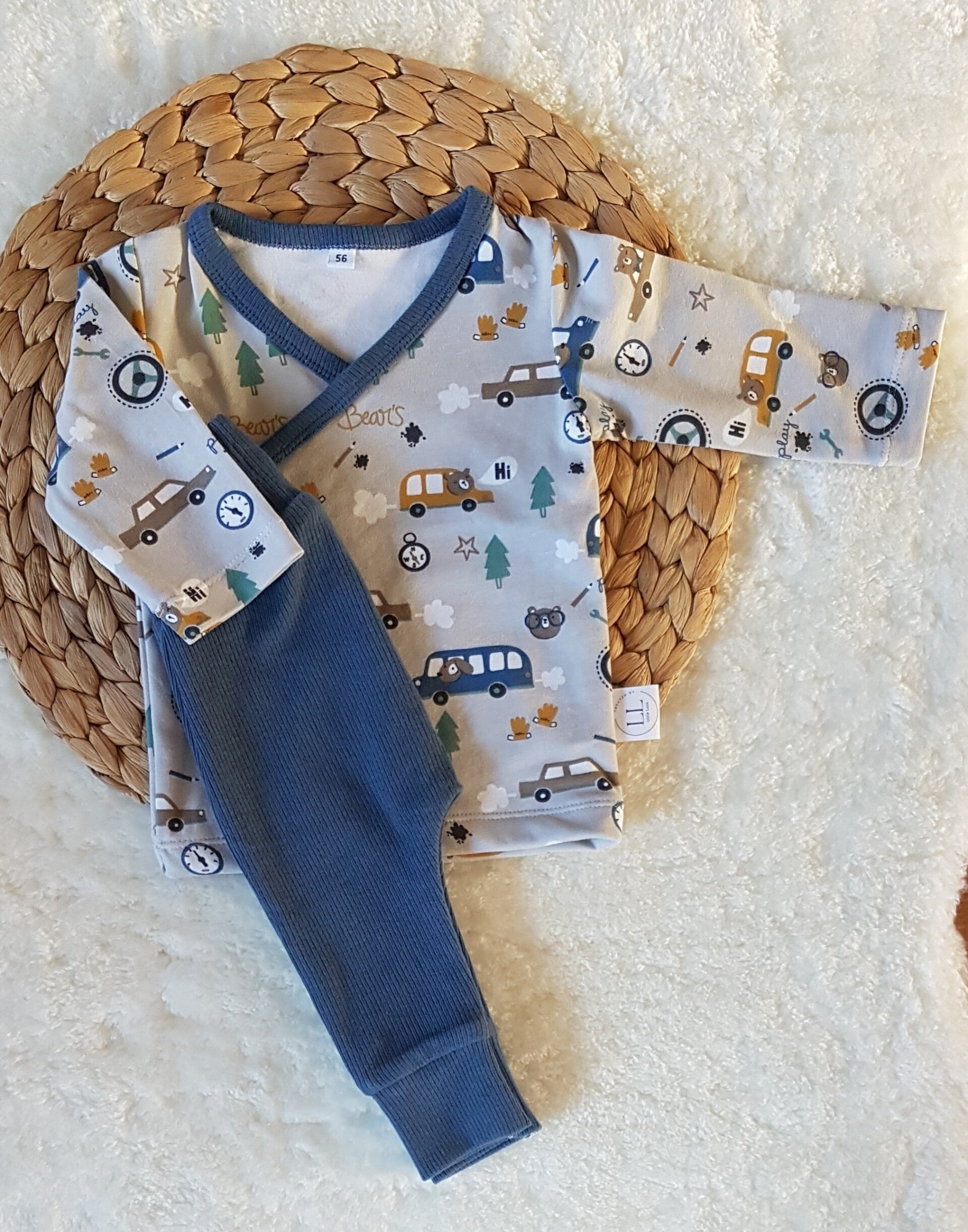 Overslagshirtje en broekje beer in auto maat 56