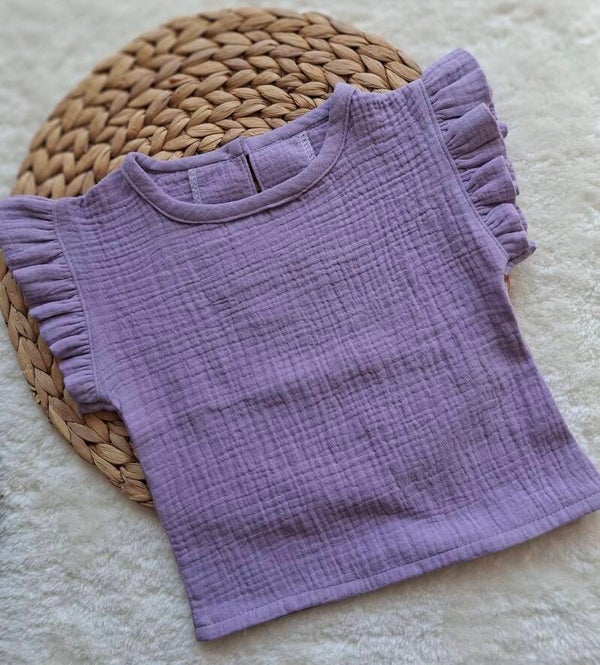 Mouwloos met ruches lila hydrofiel