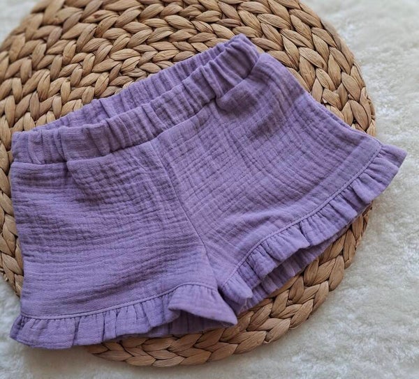 Een setje van een kort broekje en mouwloos bloesje met ruches