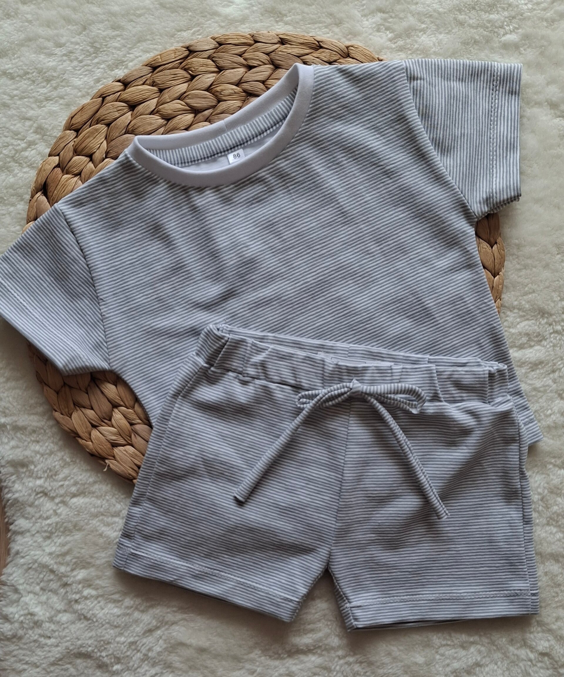 Een t-shirt met een lichtgrijs streepje wat je leuk kan combineren met een gestreeptbroekje