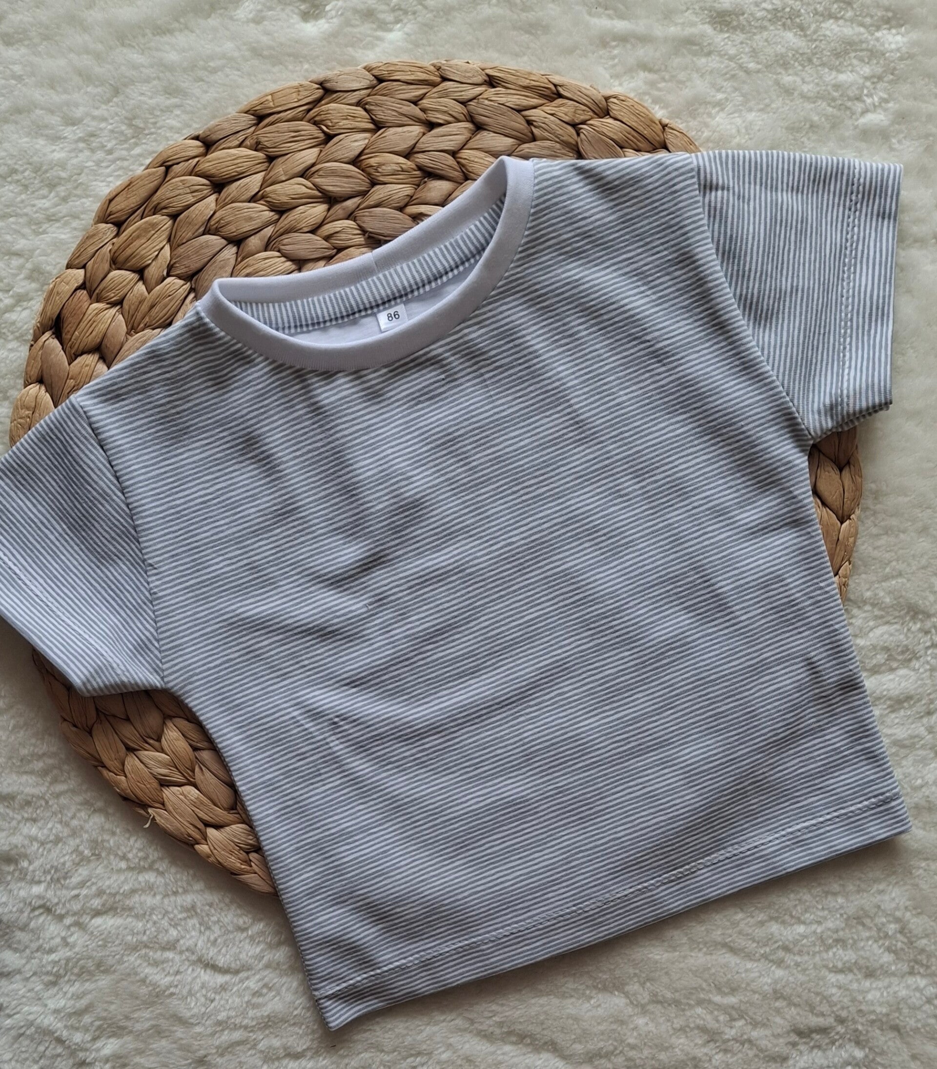 setje van t-shirt en korte broek in een lichtgrijs streepje