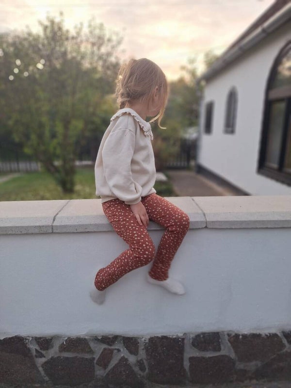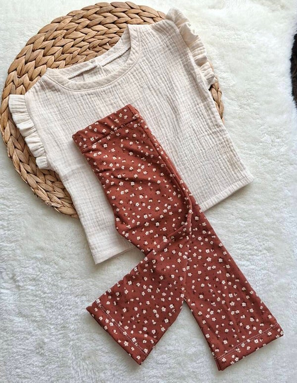 Een lief klein rouge bloemetje die we gebruikt hebben voor een flared. Een legging is natuurlijk ook leuk.