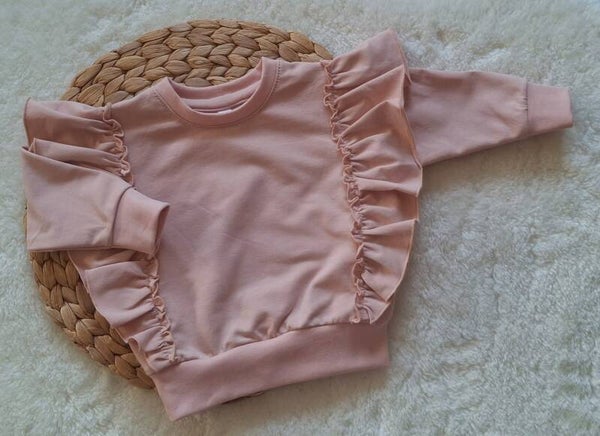 Lichtroze sweater Eline met ruches voor-en achterpand