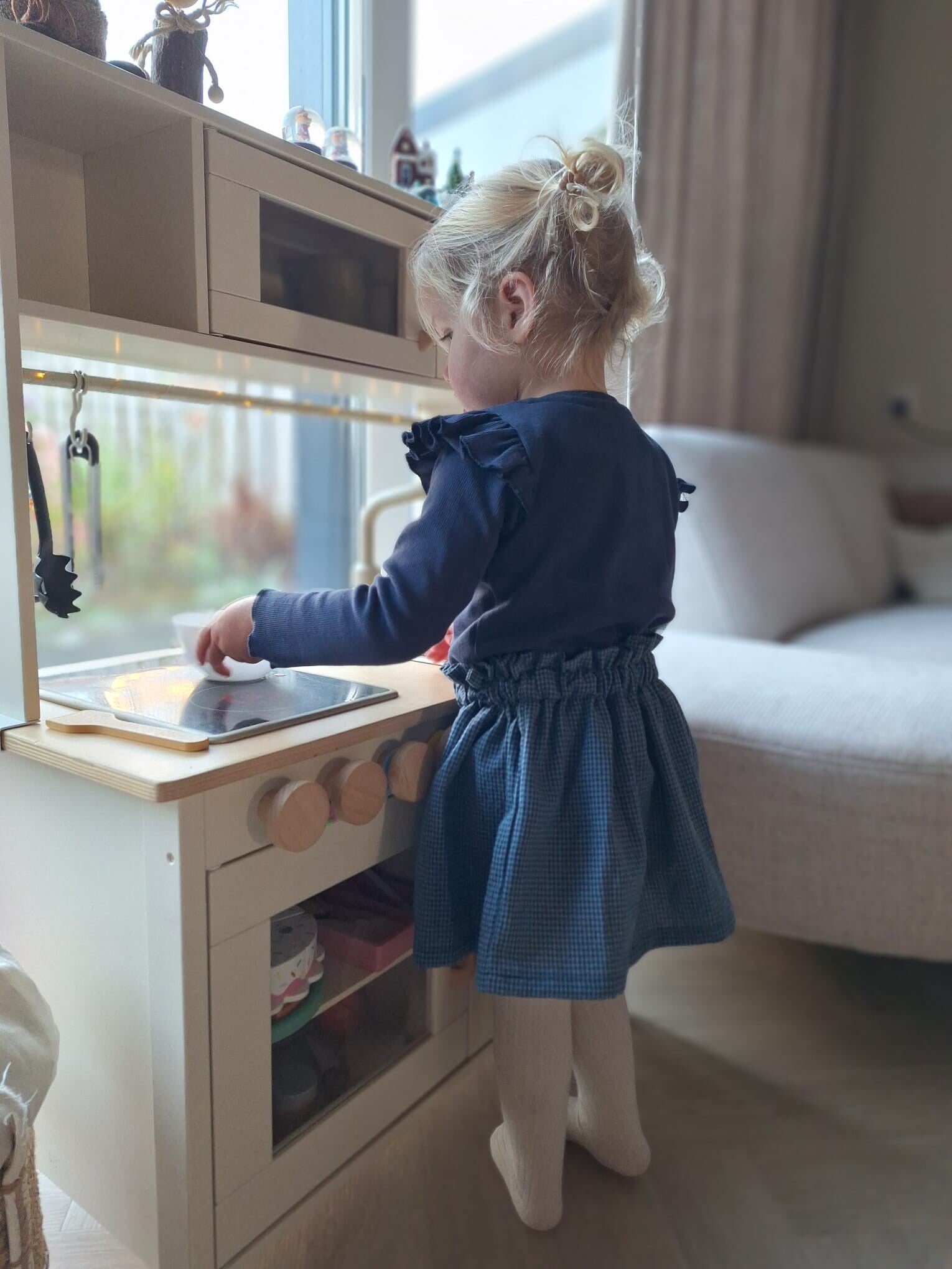 Een rokje van een mooi klein blauw ruitje.