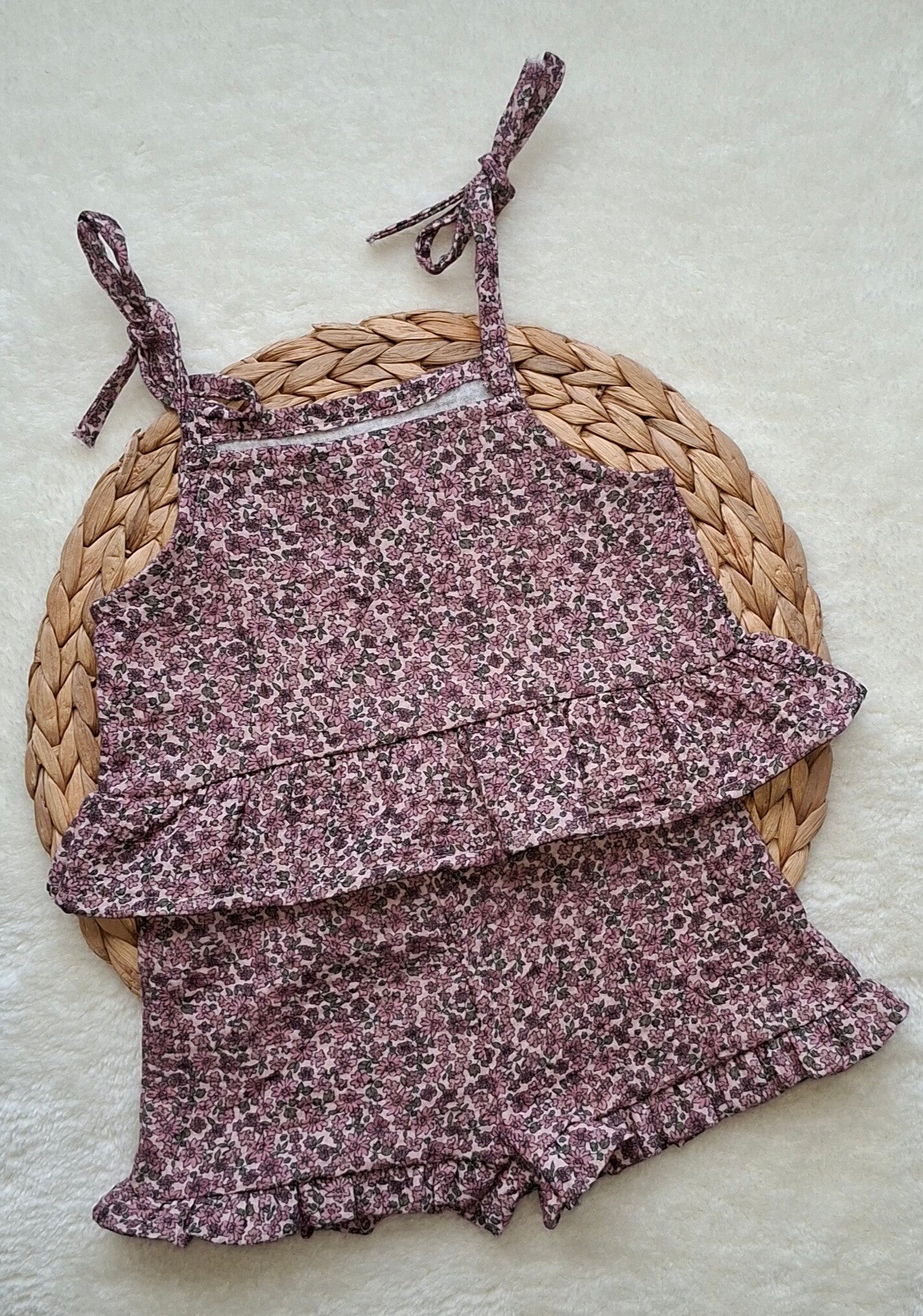 Een heerlijke luchtige topje van een mooie paarse bloemen hydrofiel met een ruche aan de onderkant. Een echte musthave in de kast van jouw dochter.